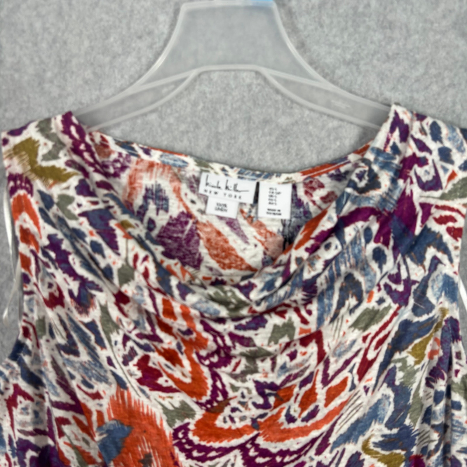 Nicole Miller Top Womens Small Purple Orange White Blue Green Floral Tank Drape Cowl Leaves Corp Career Work Office Business Church Tropical Colorful Sleeveless Jersey Stretch 100% Linen Knit Blouse Jersey Knit New with tag SKU 6312 **Please see all pictures for full item condition, details, and approximate measurements** - Ships Same/Next Day, Professional Seller, Offers Welcome, Like or watch for price drops - Item in photos is exact item you will receive - I list new items daily, be sure to browse my store/closet for more items - Bundle pricing and combined shipping available for additional savings - Feel free to send a message