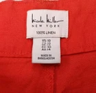 Elevate your casual wardrobe with these chic Nicole Miller wide-leg pants in a vibrant red hue. Made from 100% linen, these pants are perfect for travel and offer a relaxed fit for maximum comfort. The mid-rise pants feature a flat front and a 29-inch inseam, making them a great choice for a day at the beach or a casual outing. The pants come with a zip and button closure and have several convenient features, including pockets and easy-care fabric. These chino-style pants are machine washable and made in Bangladesh. They are a perfect addition to your wardrobe for any season, whether it's winter, summer, fall, or spring.