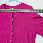 This Nicole Miller sweater is absolutely stunning! The dark pink-reddish hue with subtle tinsel sparkle adds a festive yet elegant touch. The fabric is incredibly soft and comfortable, perfect for cozy winter days. The enamel buttons are a chic detail, and the fit is true to size—roomy but flattering. It’s in excellent condition, looks brand new, and drapes beautifully. Love the long sleeves and the slight metallic shimmer throughout. A must-have for anyone who loves a little sparkle without going overboard!