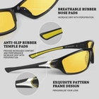 🎣HD POLARIZED NIGHT VISION LENS►The optical-grade Anti-Reflective coating on Night Vision lens helps to cut glare, working to protect your vision from distortion and help you see better.Our exclusive micro-infused amber lenses also provide enhanced visual definition and contrast. This helps to improve your ability to detect and distinguish objects when driving at night. 🚴WRAP DESIGN & ULTRA LIGHT FRAME►8-Base wrap design perfectly shield your eyes from wind & dust and help you stay fully focused during your favorite activity.These sunglasses frames are strong but lightweight,you can hardly feel them on daily outdoor activities. 🏄IDEAL FOR ANY OUTDOOR SPORTS►Best for fishing, boating, sailing, jet skiing, driving, running, cycling, climbing, hiking and traveling. You can barely feel it on your face even wear it all day, a reliable partner when you enjoy outdoor. Fashion and stylish design, with rich color combinations of frames and lenses is also suitable for daily wear. 🏌PRODUCT SIZE►FRAME WIDTH:142mm(5.59inch) BRIDGE WIDTH:23mm(0.91inch), LENS WIDTH: 63mm(2.48inch), LENS HEIGHT: 43mm(1.69inch), TEMPLE LENGTH:129mm(5.08inch). Frame suitable for medium to large faces. 🚣NO RISK TO TRY►We provide WORRY-FREE after-sales to our each U.S. customer. We pay great attention to the customers’ shopping experience. In case of any problem,please our team at any time and we will help you solve the problem until satisfied. We are at your service anywhere!