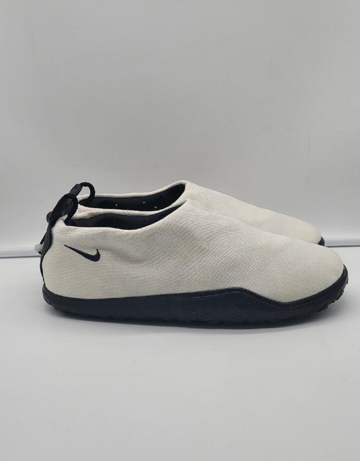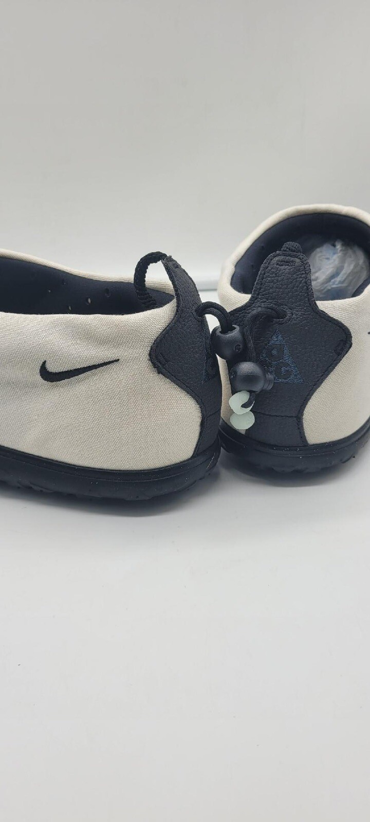 Introducing the Nike ACG Men's Summit White Black Moc Comfort Sneaker, perfect for any casual occasion! These sneakers come in a solid beige color, with a low top shoe shaft style, lace-up closure for a secure fit, and a standard shoe width. The outsole is made of durable rubber, while the upper material is a comfortable fabric. These sneakers are cushioned and lightweight for all-day comfort, making them great for walking, school, athleisure, and casual wear. They are part of the Nike ACG product line and have a style code of DZ3407-100. Don't miss out on adding these to your collection!