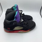 Elevate your sneaker game with these Nike AIR JORDAN 5 RETRO "Top 3" in size US 10. These high-top sneakers are perfect for casual occasions and are designed for performance and breathability, making them suitable for all seasons. The cushioned insole ensures comfort, and the pull-on closure provides ease of wear. These sneakers have a classic retro theme and are a must-have for any sneakerhead. The black color and standard shoe width make them versatile for any outfit, while the fabric insole adds a touch of luxury. Get your hands on these pre-owned Nike Air Jordan 5s, style code CZ1786001, without the box.