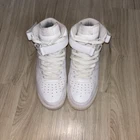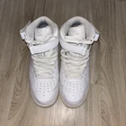 These classic Nike Air Force 1 Mid sneakers are the perfect everyday pair. The sleek all-white design is versatile and timeless, while the mid-top style adds support and style. Lightly worn and in great condition. From a pet-free, smoke-free home.
