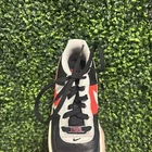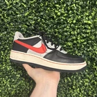 The shoes I am selling are a pair of red black and gray Air Force ones. They have only been worn one time, but are in completely great condition and looking to find a new home.