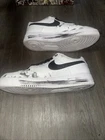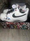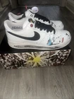 After a year-long hiatus, K-Pop star G-Dragon’s fashion label, Peaceminusone, teamed up with Nike once again to release the Nike Air Force 1 Low Peaceminusone Para-noise 2.0. This sequel release follows the same DIY theme as last year’s AF-1 Para-noise, only this time the colorway was flipped. The Air Force 1 Low Peaceminusone Para-noise 2.0 features a white upper treated with a special lacquer coating that will rub off over time, revealing G-Dragon’s hidden artwork. The Peaceminusone Daisy motif is embroidered on the tongue and is accompanied by black paint streaks on the entire white sole. Black overlays, detailing, and laces complete the design. 100% authentic and the shoes has og box and serious inquiries only