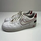 Nike Air Force 1 Retro BHM QS Leather sneakers white - 11 Brand: Nike Size: 11 Type: Sneakers Color: White Closure: Lace Up Material: Leather Condition: Very Good Used Condition Nike Air Force 1 Retro BHM QS Leather Sneakers in White. In 2015, Nike paid tribute to Black History Month by releasing a limited edition of the classic Air Force 1 sneakers. This version is crafted from white leather with red accents at the heel and a coordinating Swoosh at the sidewall. They’re embroidered with a Pan-African flag just below the heel counter. Casual, Everyday, Minimalist, Chic, Trendy, Going Out, Closet Staple, Streetwear, Boho, Bohemian, Athleisure, Black History Month