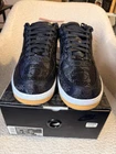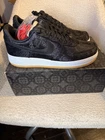 Elevate your sneaker game with the Nike Air Force 1 x Fragment Design x CLOT Black Silk AF1 CLOT CZ3986-001 in size 10. This stylish and authentic sneaker features a low top shoe shaft style, with a luxurious silk upper material that's perfect for any designer-loving man. The shoe is part of the Nike Air Force product line, and it boasts a 100% authentic guarantee, making it a must-have for any sneaker collector. The black color of the shoe is versatile and can be paired with any outfit, making it a great addition to your wardrobe. The shoe was manufactured in 2019, and it comes with the original style code, CZ3986-001. This sneaker is perfect for any athletic activity, and it's sure to turn heads with its unique design.