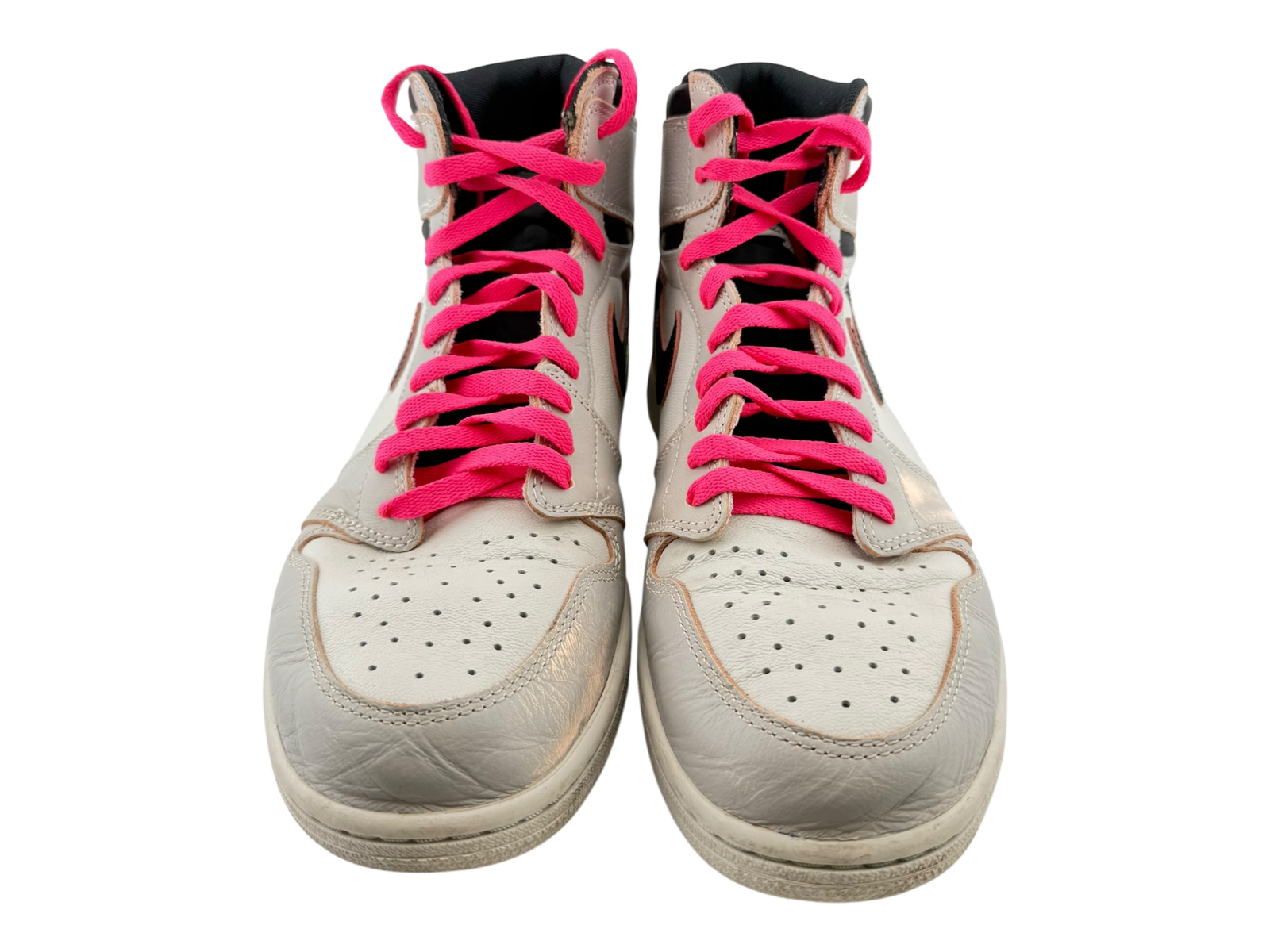 ALWAYS AUTHENTIC, SHIPS 1 BUSINESS DAY, VERIFIED SELLER Nike Air Jordan 1 NYC To Paris US 11.5 Used with Box The Nike Air Jordan 1 ‘NYC to Paris’ features a unique colorway that changes over time, revealing a hidden layer beneath the surface. This pair, in size US 11.5, showcases a blend of light grey and black with vibrant pink laces, offering a stylish and versatile look. The shoes are in used condition, with some signs of wear visible on the soles and uppers, but they remain in good overall shape. The iconic Air Jordan wings logo is prominently displayed on the side, and the shoes come with the original box, adding to their collectible value. Perfect for sneaker enthusiasts and collectors alike, these shoes offer a blend of history and style.