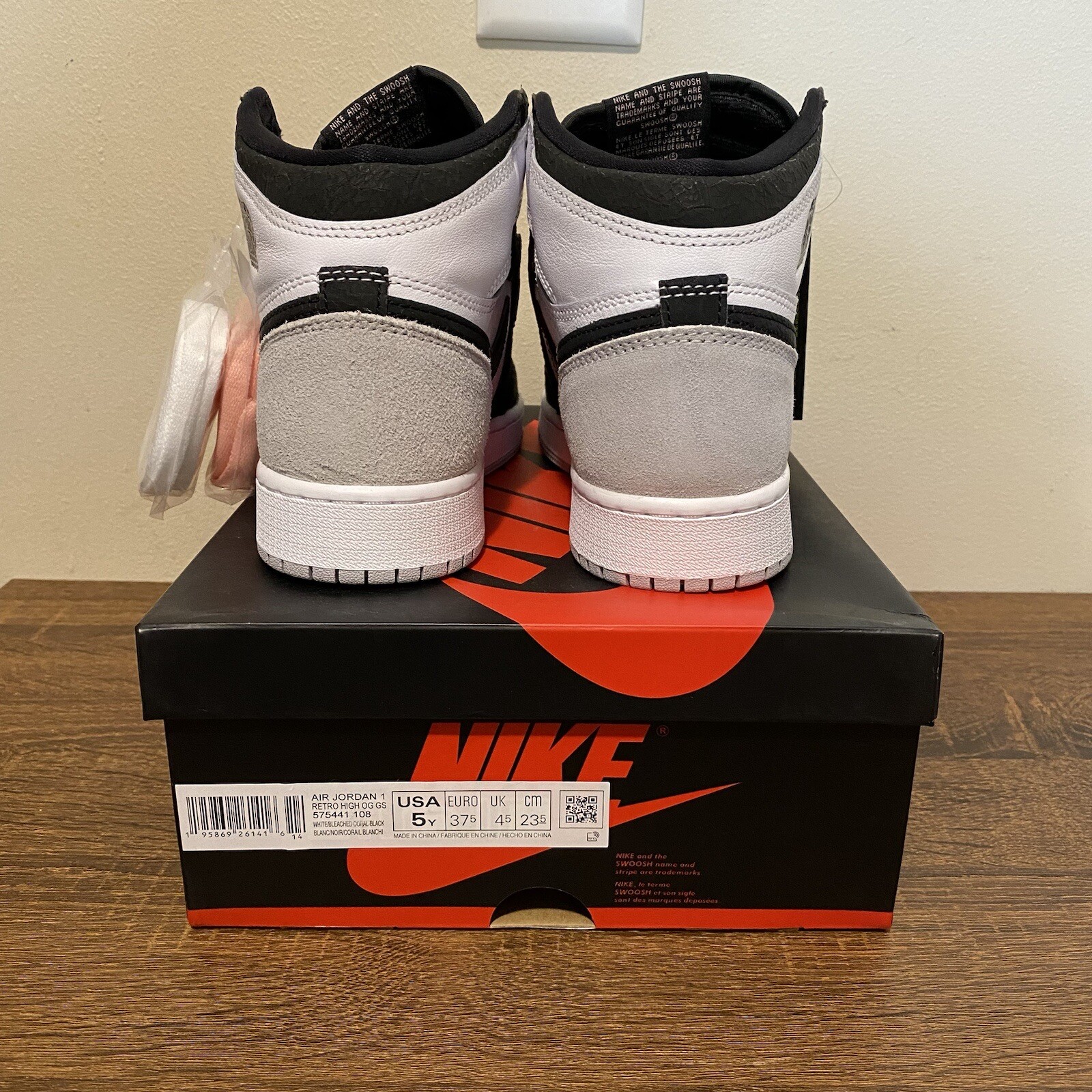 Elevate your sneaker game with the Nike Air Jordan 1 Retro High OG Stage Haze Bleached Coral GS 5Y. This sneaker is a must-have for any sneaker enthusiast, featuring the iconic Air Jordan logo and a stylish design that's perfect for any fashion-forward individual. Whether you're going out with friends or just running errands, these are the perfect addition to your wardrobe. 100% Authentic. In-Hand Ready to Ship. Brand New. Please see pics above for a closer look at product. Legit Seller.