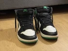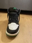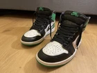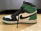 These are my air jordan 1s I’m selling as I have no use for them any more after growing out of them. They are in excellent condition and come with the original box. Offers welcome! AI description : The Nike Air Jordan 1 Retro High OG 'Lucky Green' in Black and Green is a stylish and iconic trainer designed for men. This high-top sneaker features a lace-up closure, leather upper material, and a standard shoe width for a comfortable fit. With a retro theme and the signature Air Jordan 1 model, this shoe is perfect for casual occasions during the summer season. Made in China, this UK size 8.5 shoe showcases the brand's classic design and colourway that is sure to make a statement.