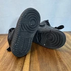Brand: Jordan (Nike Air Jordan line) Model: Air Jordan 1 Retro High toddler athletic shoes with classic high-top basketball silhouette. Color: All black leather upper with black Swoosh overlays, black Wings logo on collar, black midsole and outsole, and black laces. Gender/Size: Boys Toddler; size on tag: US 5C, UK 4.5, EUR 21, cm 11, BR 20, CN 110(2.5). Style/Model code: 640735-090 (as shown on inner tag). UPC: 00192499700506 (printed near barcode on inner tag). Country of origin: Made in Vietnam; production dates listed as 02/20/19 to 04/17/19 on interior tag. Materials: Leather upper, soft fabric lining, and durable rubber outsole. Details: Lace-up closure for secure fit, padded tongue and collar for comfort, perforated toe box for breathability, pull tab at heel for easy on/off, and solid rubber cupsole with circular traction pattern for grip.
