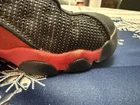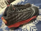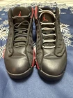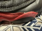 Elevate your sneaker game with these Nike Air Jordan 13 Retro GS 'Bred' 2017 sneakers. Designed with a high-top shoe shaft style, these sneakers come in a solid black color with a rubber outsole material for enhanced comfort and durability. The cushioned and comfortable features make it perfect for both casual and activewear occasions, especially during winter, summer, fall, and spring. These sneakers are perfect for teens who love basketball and want to add a retro-inspired touch to their wardrobe. The Air Jordan 13 Retro Bred 2017 sneakers have a standard shoe width and are available in US Youth Size 1Y, UK Shoe Size 13.5, and EU Shoe Size 32. With its solid pattern, fabric lining material, and fabric upper material, these sneakers are sure to impress. Item pictured will be item received. Thanks