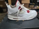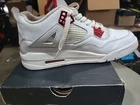The Nike Air Jordan 4 Retro Metallic Red White 408452-112 is a limited edition sneaker released in 2020. This retro silhouette features a low top design with a metallic red and white colorway, perfect for fans of Air Jordan and Michael Jordan. Made with leather upper material, this athletic shoe is part of the Air Jordan product line, known for its iconic design and performance on the basketball court or for everyday lifestyle activities. With a standard shoe width and crafted in Vietnam, this shoe is sure to be a standout addition to any sneaker collection.