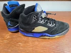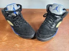 Nike Air Jordan 5 Retro Mens Size 8.5 Black Blue Basketball Suede Shoes Sneakers. Jordans are in preowned condition. Shoelace on right shoe is broken. See pictures for details. Please ask any questions before purchase. If there is any issue, please contact us first before leaving feedback. Thank you.