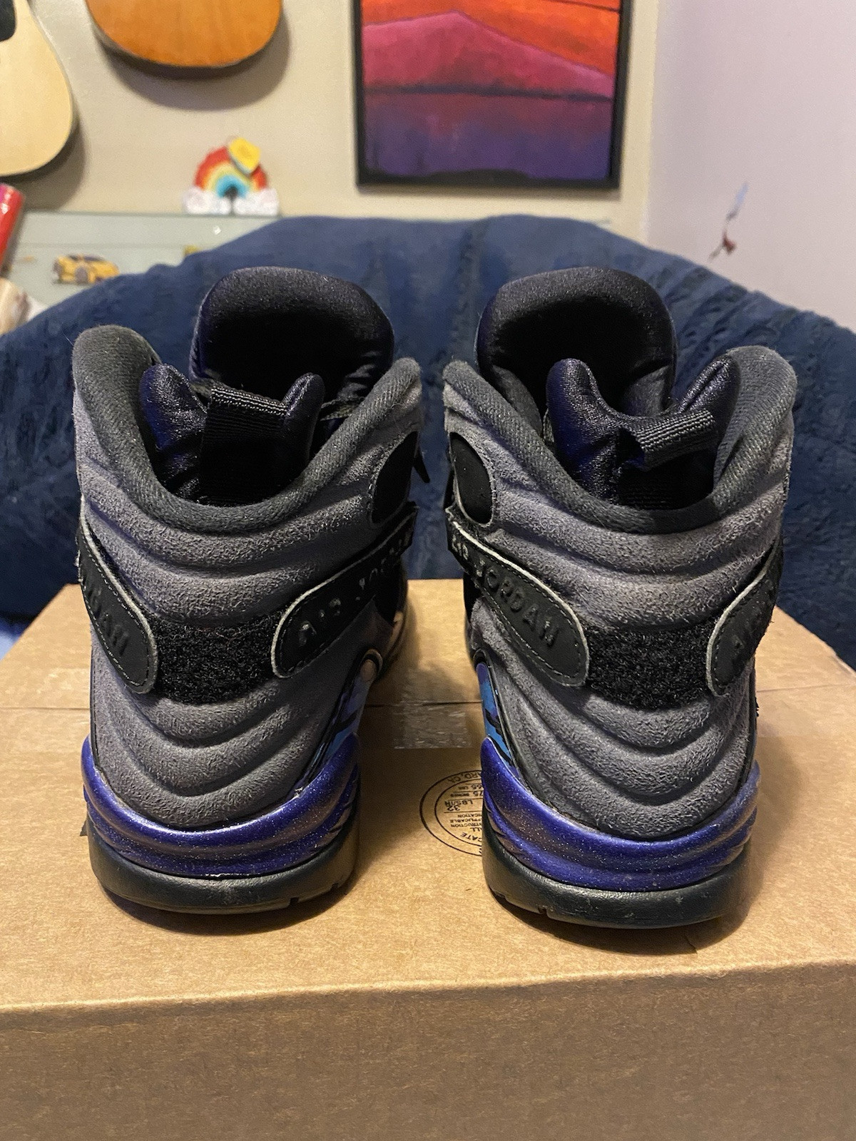 The Nike Air Jordan 8 Aqua is a pre-owned sneaker designed for men, specifically for basketball performance. This athletic shoe features a lace-up closure for a secure fit and is in a vibrant blue colorway. The Jordan brand ensures both style and comfort, making it suitable for activewear occasions. Its retro theme adds a nostalgic touch to its design, while the size 8.5 fits most individuals looking for a stylish and functional athletic shoe.