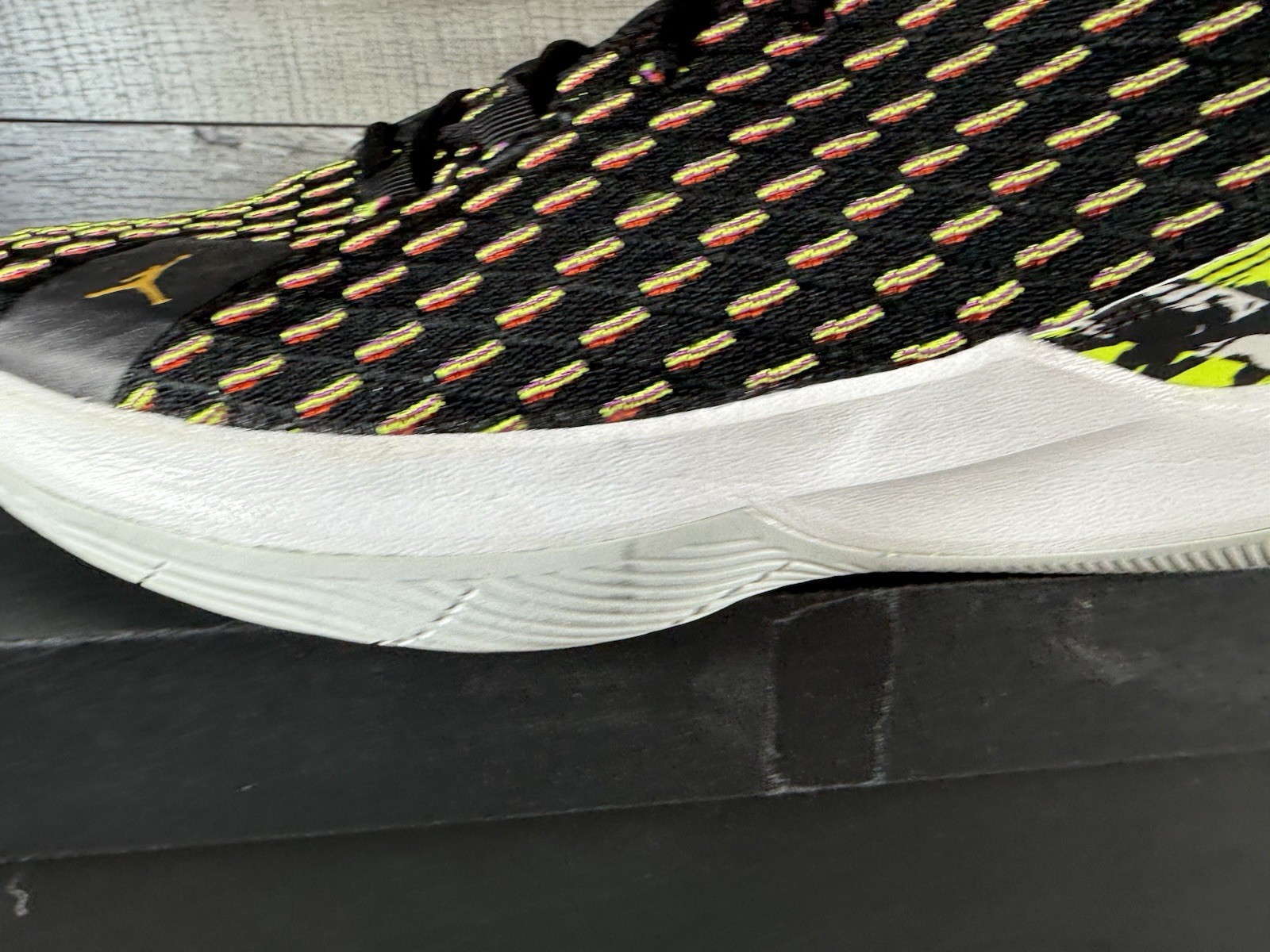 These Jordans are fire! The purple and green pop so hard, and they’re still in amazing shape—just a few tiny scuffs. Super comfy with great grip, perfect for balling or flexing. The box has a little wear, but who cares when the kicks look this fresh? Absolute steal for the condition!