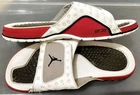 The NIKE AIR JORDAN HYDRO XIII 13 RETRO Men's Slides in White/Red are a highly sought-after and rare pair of sandals featuring the iconic Jordan Jumpman logo. These slip-on slides are perfect for casual or activewear occasions, with a solid pattern and adjustable strap for a comfortable fit. Made with synthetic material and a rubber insole, these retro-themed slides are a stylish addition to any slide collection, combining the classic Air Jordan product line with a modern twist on the slide style.