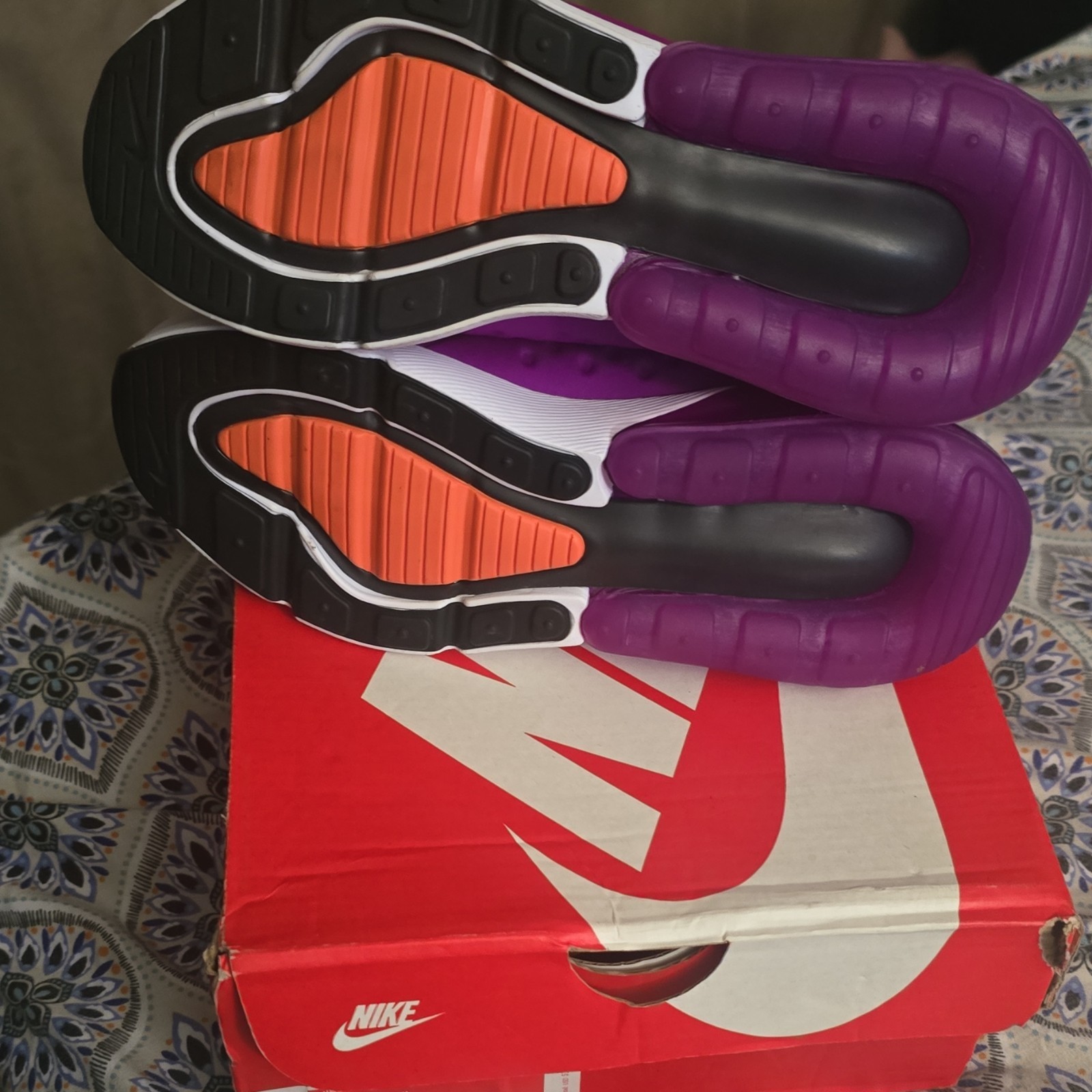 Nike Air Max 270 Extreme GS Kids Sneakers Grey Purple Orange Slip On 4Y