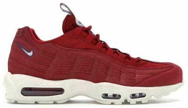 Manufacturer Color:Gym Red/Gym Blue-SailUS Shoe Size:9.5Type:AthleticRelease Date:20180402Style:SneakerDepartment:MenModel:Nike Air Max 95Product Line:Nike Air MaxNickname:Gym RedColor:RedRelease Year:2018Full Model:Nike Air Max 95 TT Pull TabStyle Code:AJ1844-600Brand:Nike