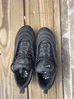 The Nike Air Max 97 Triple Black athletic sneakers are designed for women in size 6.5, featuring a lace-up closure and a low-top silhouette. These sneakers are suitable for activewear and casual occasions, with a trendy design and signature Nike logo accents. Made with breathable and lightweight materials, they offer comfort and performance for activities like gym training, walking, cross training, CrossFit, and running. The black color, standard shoe width, and durable rubber outsole make them versatile for all seasons, while the foam insole provides added cushioning for a comfortable fit.no box