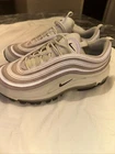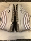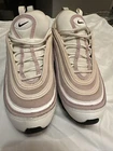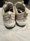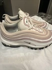Elevate your activewear and casual outfits with these Nike Air Max 97 sneakers in a stunning Summit White, Pink Cream, and Black colorway. These sneakers feature a comfortable and breathable design, with a standard shoe width and lace-up closure. The low-top shoe shaft style and athletic type make them perfect for running and jogging, while the customized-free model ensures a versatile fit for any occasion. These Nike Air Max 97 sneakers are a must-have for any sneaker enthusiast. The women's size 10 shoes are part of the Nike Air Max product line, known for their durable and stylish design. Add these sneakers to your collection today and step out in style.