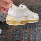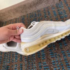 Push your style full speed ahead in the Nike Air Max 97, featuring the OG’s ripple design that was inspired by Japanese bullet trains. Taking the revolutionary full-length Nike Air unit that shook up the running world and adding fresh details, it lets you ride in first-class comfort. Synthetic upper keeps the fluid look of the OG while adding comfort and durability. Mesh underlays help keep it airy. Originally designed for performance running, the full-length Max Air unit adds soft, lasting comfort. Hidden lacing system was a first of its kind and delivers a streamlined look. Condition - Preowned. Check images for signs of wear.