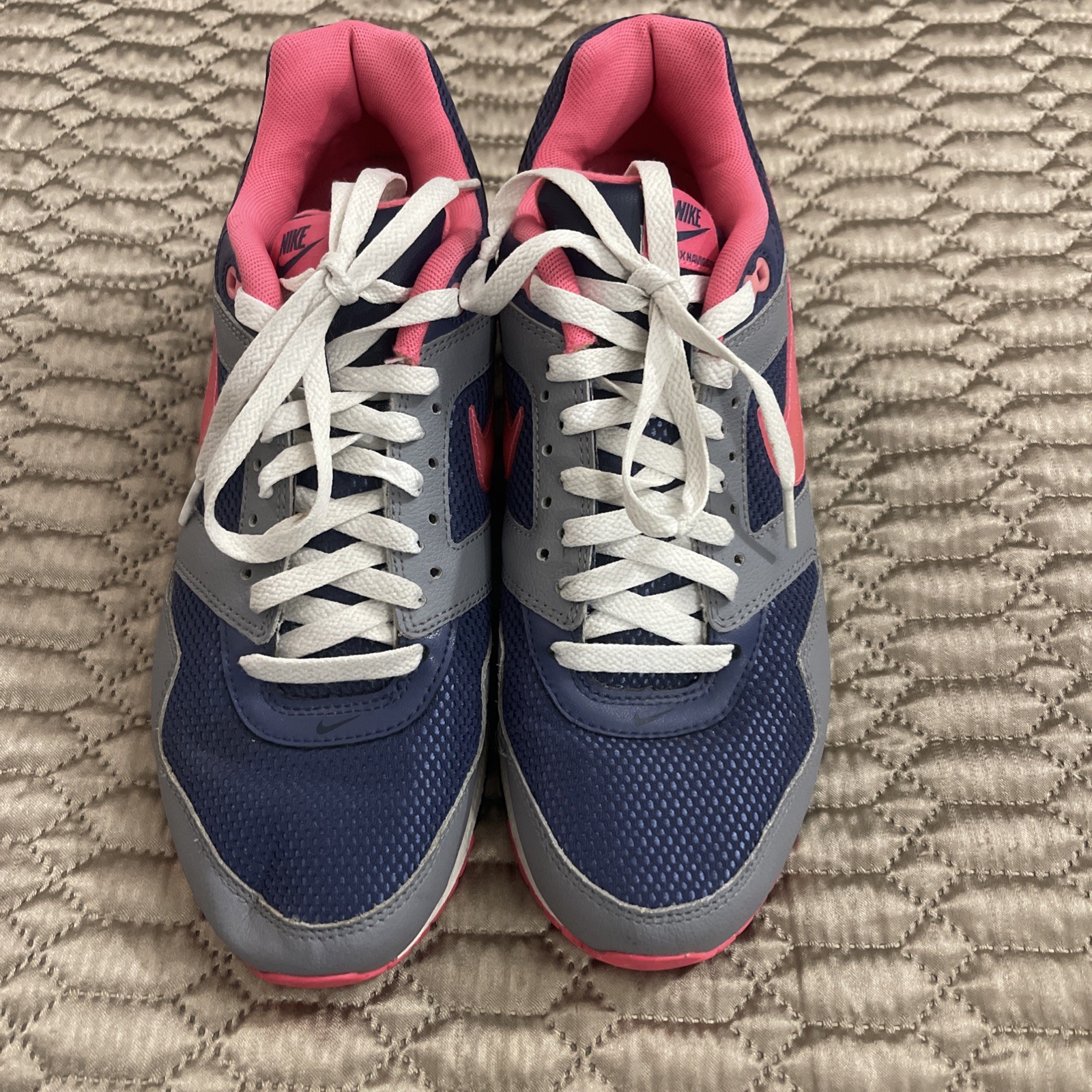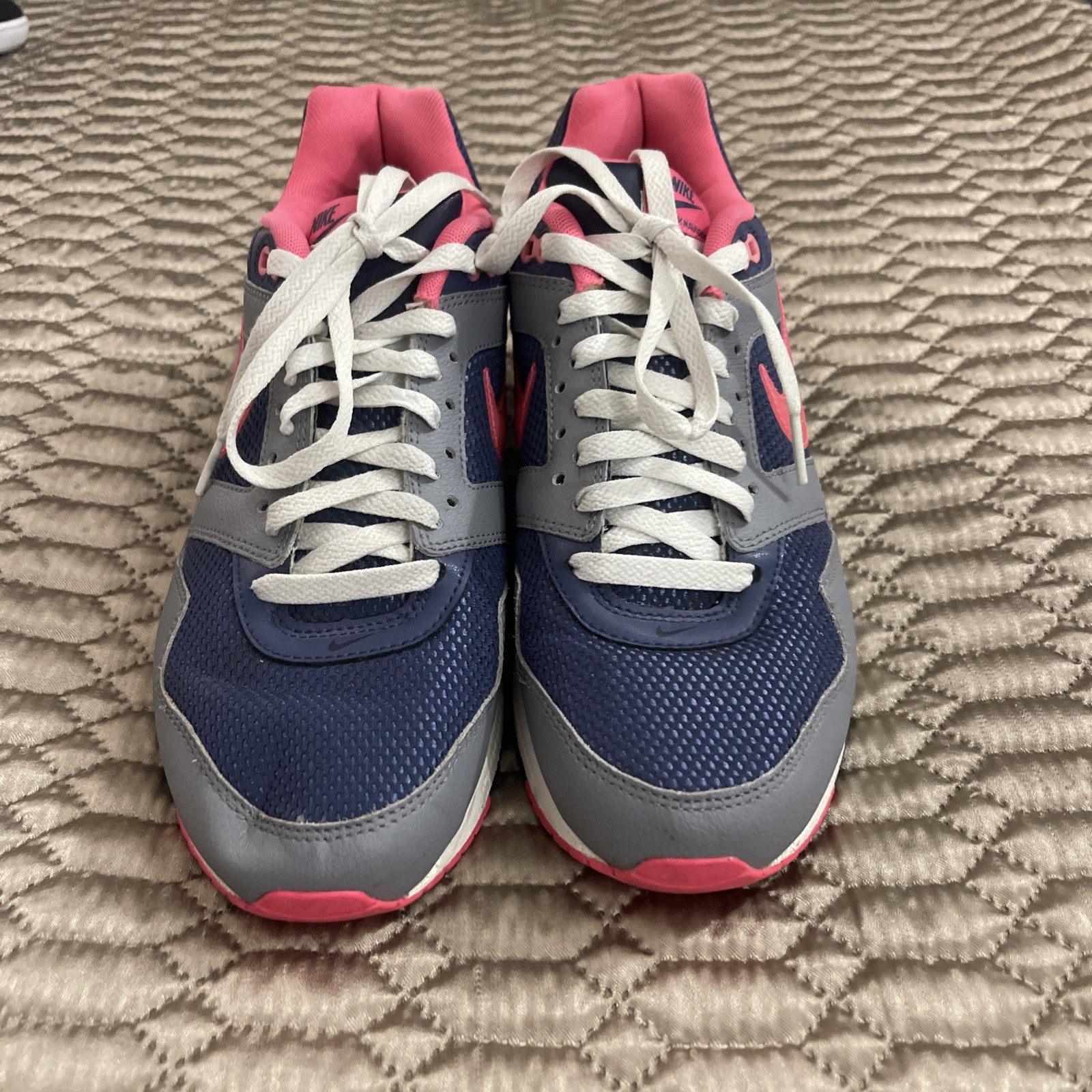 The Nike Air Max Women's Athletic Shoes in size 10 are a stylish and functional choice for any active woman. The blue, pink, and gray color scheme adds a fun and feminine touch to these sneakers, while the breathable mesh upper material ensures comfort during workouts. With the iconic Nike Air Max 90 model and a sleek sneaker style, these shoes are perfect for both fashion and function. Whether you're hitting the gym or running errands, these athletic shoes are a trendy and practical option for everyday wear.