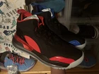 New with the original box and men’s size 9.5 Nike Air Paris Saint-Germain x Jordan Aerospace 720. This limited edition sneaker boasts a high top design with a sleek red, blue, and black colorway, perfect for any athletic or streetwear look. Featuring arch support, cushioning, and a lightweight design, these sneakers are not just stylish but also functional for any physical activity. The reflective detailing adds an extra touch of style and safety, while the breathable synthetic upper material ensures comfort all day long. Don't miss out on this special edition release from Nike and Jordan, perfect for any sneaker collector or fashion lover.