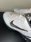Elevate your golf game with these sleek Nike Air Rival Tac golf shoes. Crafted from high-quality leather, they are both stylish and durable. The white and black colorway adds a touch of sophistication to your outfit while the Air feature ensures maximum comfort during long rounds on the course. The size 8.5 shoes are labeled as "pre-owned" but are in excellent condition, ready to be worn straight out of the box. Perfect for any golf enthusiast looking to up their shoe game. Complete your look with these Nike Golf shoes today. Used in good condition