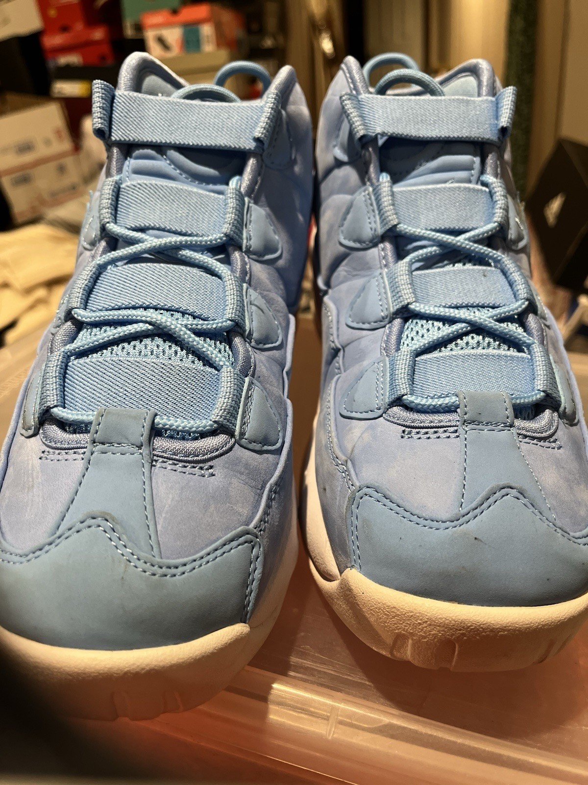 The Nike Air Up-Tempo Men's Sneakers in size 9, style code 922932-400, are a stylish and comfortable athletic shoe option for men. Featuring a University Blue and White colorway from the 2017 release, these sneakers are part of the Nike Air Max product line. Known for their iconic sneaker style and quality construction, these shoes are a popular choice for those looking for both style and performance in their footwear. These sneakers are preowned in excellent condition without the original box
