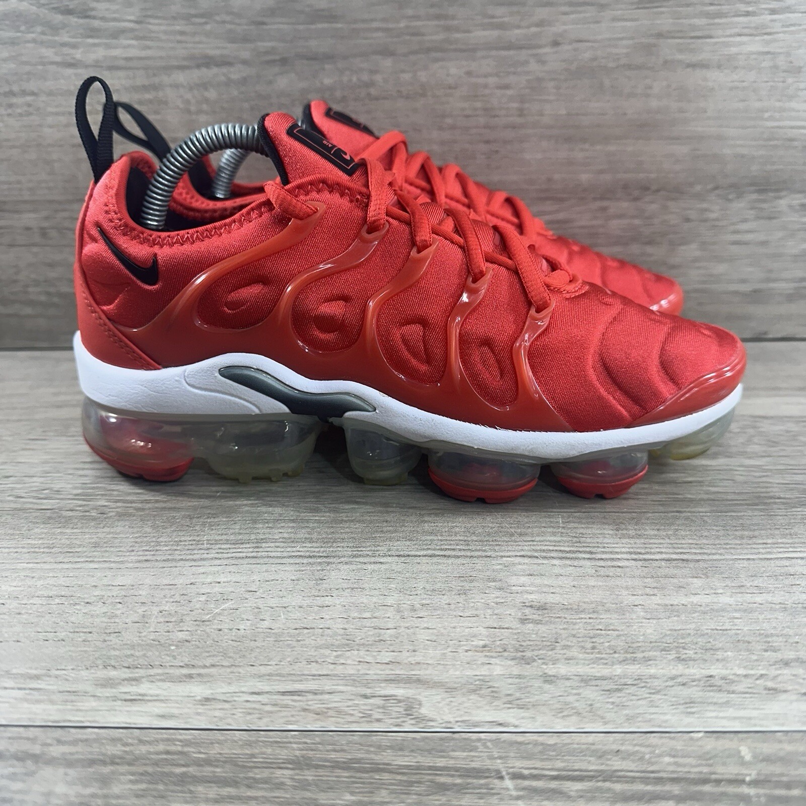 The Nike Air Vapormax Plus Chili Red White Running Shoes are a limited edition sneaker released in 2021 for women. Featuring a vibrant chili red color with white accents, these shoes have a lace-up closure and a low-top shoe shaft style. They offer a standard shoe width and are designed for various activities like gym training, walking, cycling, and running, making them versatile for different workout routines. The upper material is synthetic, and the outsole is made of fabric, providing comfort and durability during exercise.