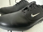 Elevate your golf game with these Nike Air Zoom Victory Tour sneakers. Designed for athletic performance, these black leather sneakers feature a chrome logo and lace-up closure for a secure fit. The Air Zoom technology provides cushioning and responsiveness for a comfortable and efficient golf swing. Crafted by Nike, a leading brand in athletic apparel, these shoes are perfect for the modern man. Don't miss out on the opportunity to own a pair of these high-quality sneakers. Custom SKU: 683