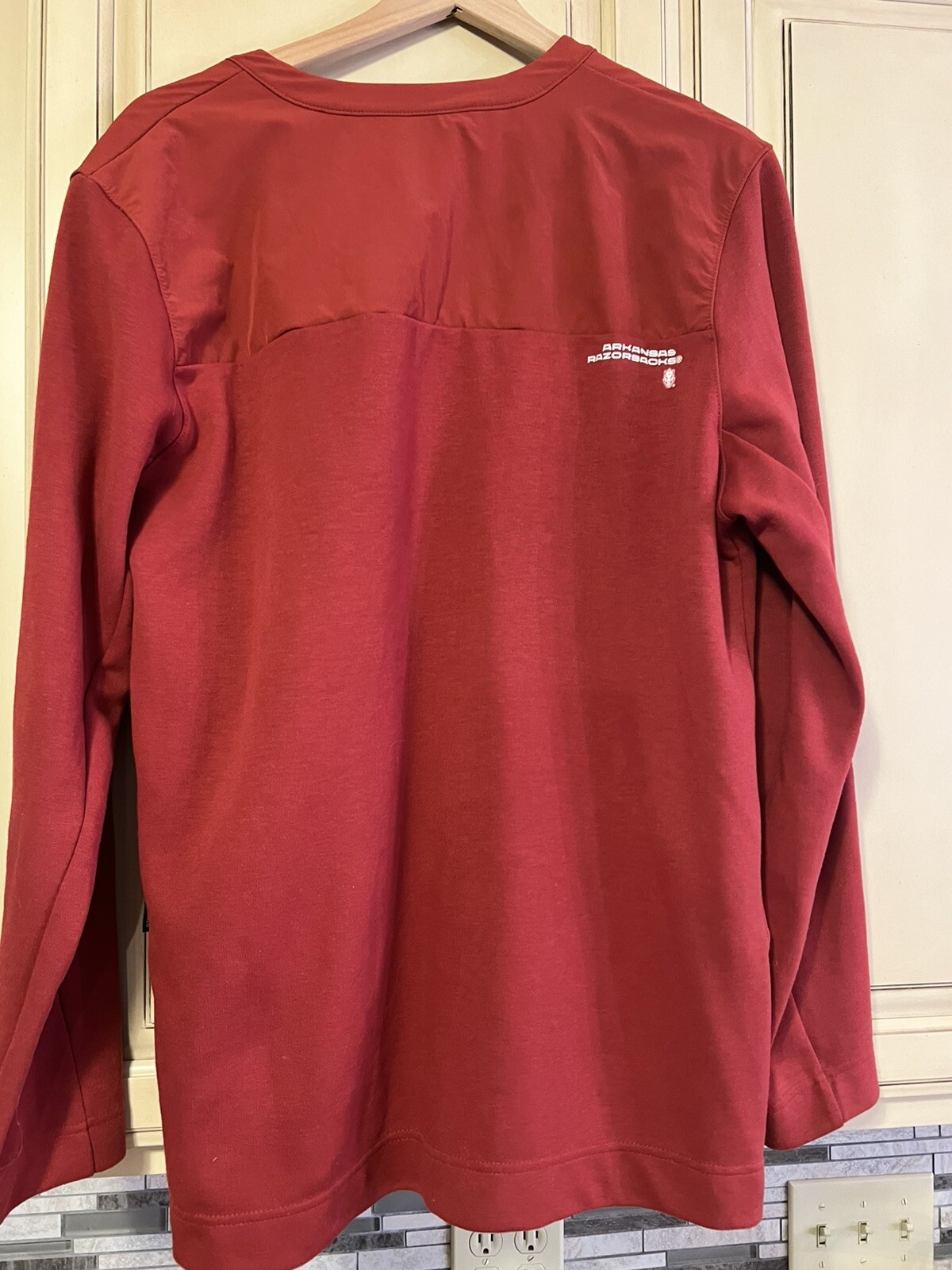 Show your support for the Arkansas Razorbacks with this officially licensed Nike Coach Jacket. Perfect for football season, this red jacket features the team's logo and is made from high-quality materials for comfort and durability. The jacket is designed for men and comes in size M, making it a great addition to any fan's collection. Whether you're heading to a game, watching from home, or just want to show off your team spirit, this Nike Arkansas Razorbacks Coach Jacket is the perfect choice. It's ideal for NCAA events and tournaments, and is sure to make you stand out from the crowd. So why wait? Order yours today and show everyone that you're a true fan!