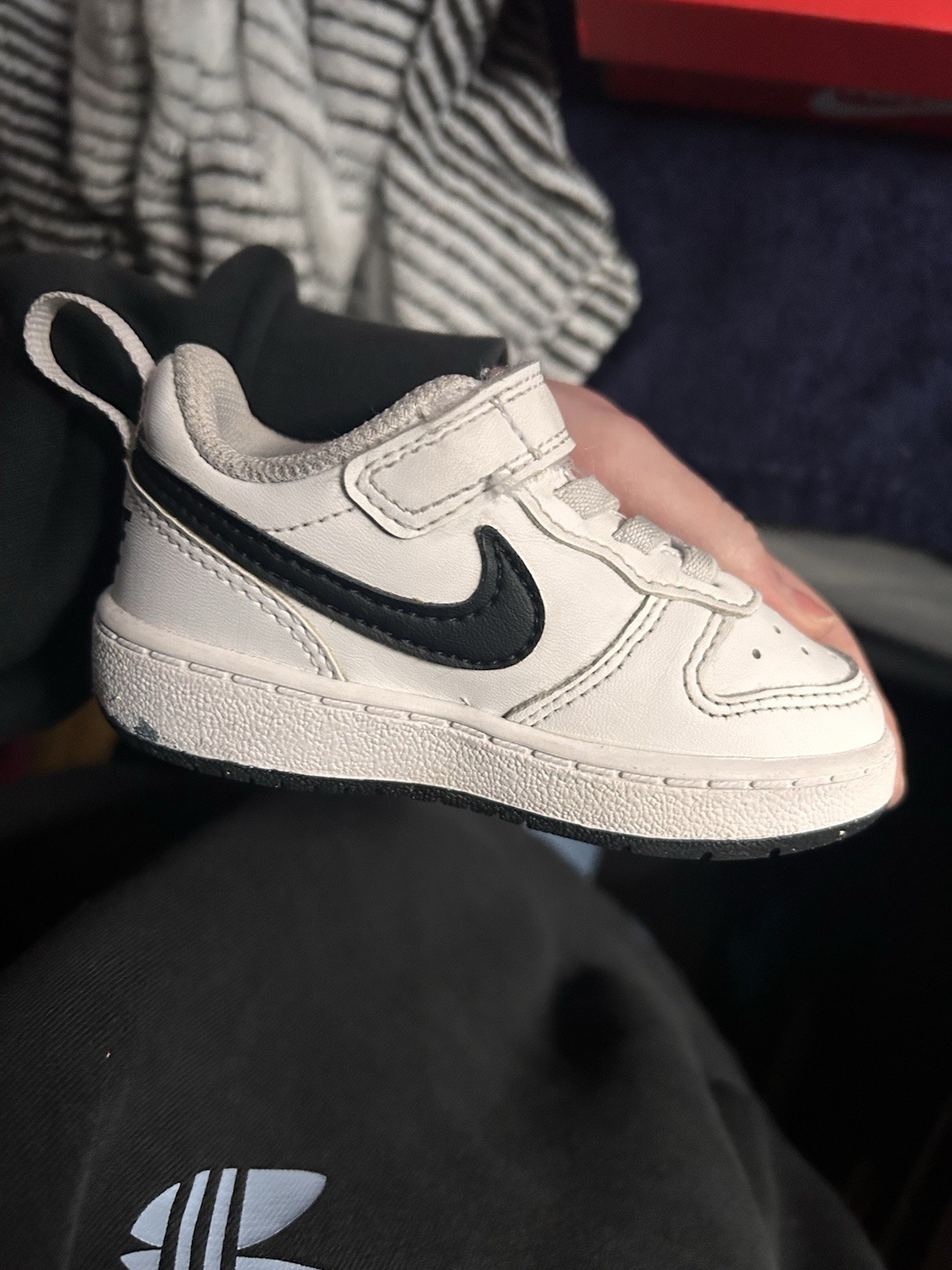 Nike Baby Leather White Black Low Top Sneakers Hook & Loop Logo