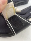 These Nike Comfort Footbed Slides are slip-on sandals in black, designed for women in size 8W. They feature a low heel, cushioned footbed, adjustable strap, and a rubber outsole for comfort and support. Perfect for travel, activewear, or casual wear during summer, fall, and spring seasons. The sandals have a standard shoe width and a flat heel style.