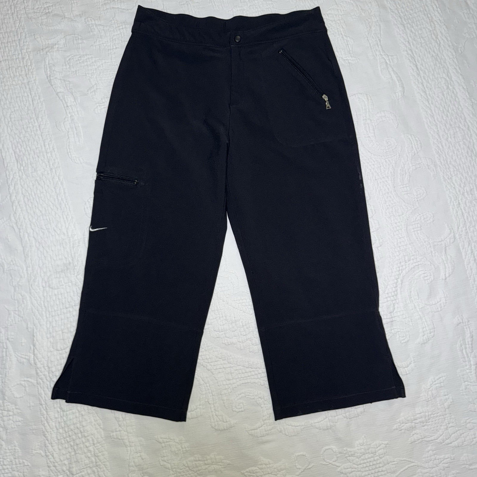 Women's Nike Black Pants Has zipper pockets that make it ideal for hiking , walks . or even just running errands and hanging out around the house Measurements are shown in photos and taken flat RN#56323 CA#05553