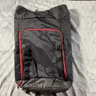 Brand: Nike Style: Roll-Top Backpack / Laptop Daypack Color: Black with Red Accents Material: 100% Polyester (Body & Lining) Made in: Indonesia Tag Info: RN#56323, CA#05553, Style Code: CM4553 Condition: Pre-owned. Clean and structurally sound. No major flaws. See photos. ⸻ Features: • Durable roll-top / cinch-style main compartment with buckle closure • Top zip pocket with diamond-patterned texture and red Nike Swoosh • Large front zip pocket with red piping • Side pockets – one open, one partially shown • Internal sleeve (likely fits a laptop or hydration pack) • Padded adjustable shoulder straps for comfort • Reinforced base for added durability • Great for gym, travel, school, hiking, or everyday use ⸻ Measurements (approximate): • Height: 21 inches • Width: 14–15 inches • Depth: ~6 inches (base)