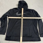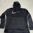 Elevate your streetwear style with this Nike Black Silver Marble Swoosh Therma Pullover Hoodie. Crafted with Nike's innovative Therma fabric, this hoodie is designed to keep you warm and comfortable during chilly days. The black and silver marble pattern, along with the metallic silver Swoosh logo, gives this hoodie a distinct and stylish look. Featuring a hood and pockets, this XL hoodie is perfect for casual wear or active pursuits. It is suitable for men who appreciate quality and style in their clothing. Whether you're going for a jog or running errands, this Nike hoodie is a must-have for your wardrobe.