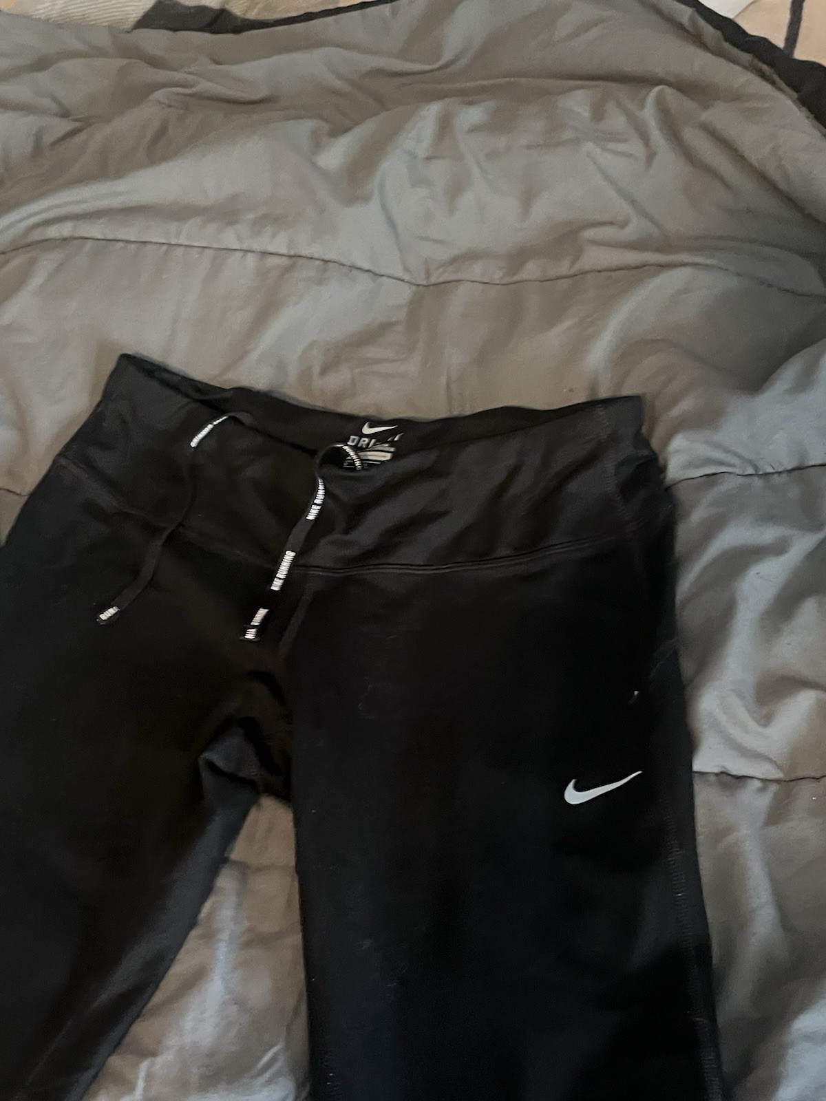 The Nike Black Athletic Leggings with Swoosh Logo in Size M are a stylish and functional addition to any activewear collection. Made from a blend of polyester and spandex, these leggings offer a comfortable fit with some compression for added support. Featuring a solid black color with a stylish Swoosh logo, these leggings are perfect for a variety of activities such as gym workouts, yoga, or running. The pull-on closure and elastic waist ensure a secure and comfortable fit, making them ideal for all-day wear during the summer, fall, or spring seasons.