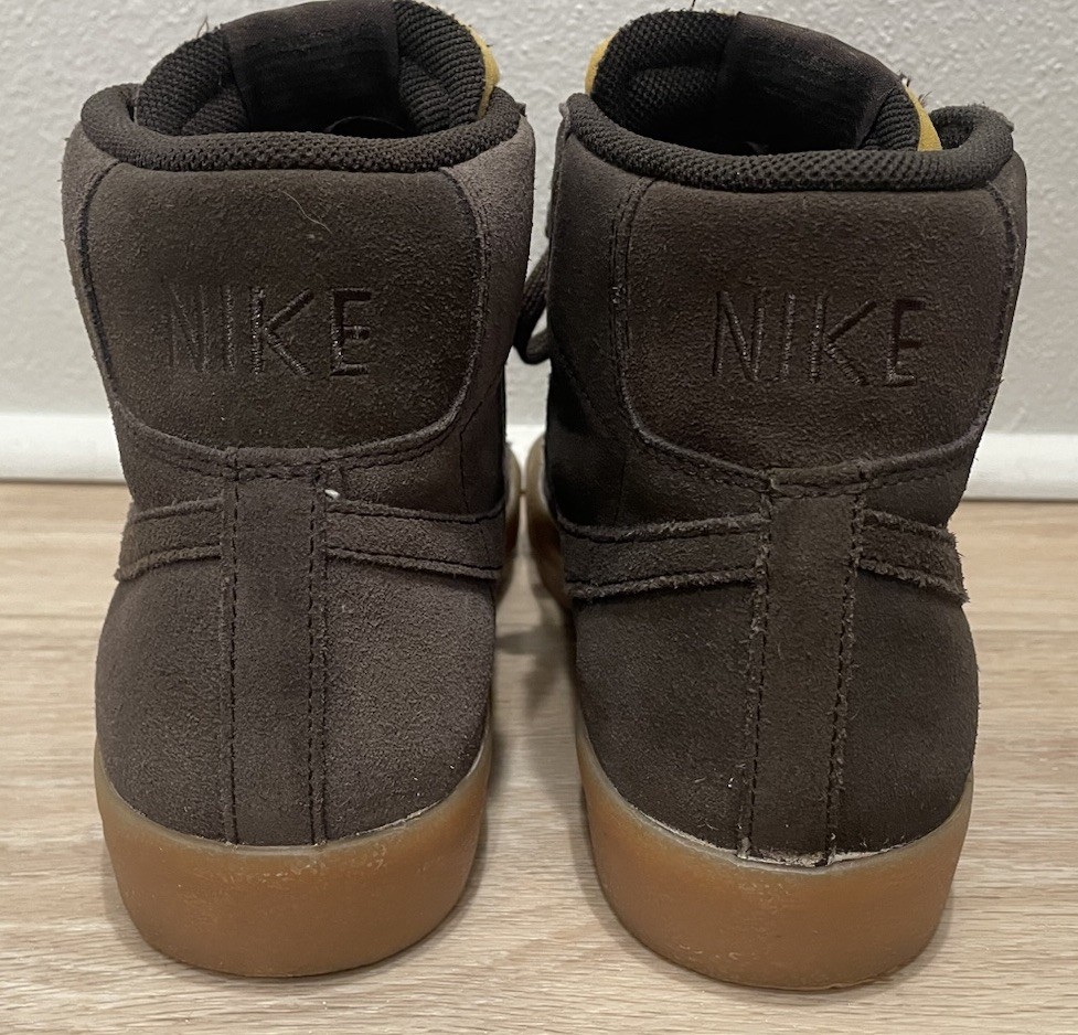 The Nike Blazer 77 Suede Mid Velvet Brown Size 9 High Top is a stylish sneaker designed for men, featuring a lace-up closure and a suede upper material in a solid brown color. This retro-themed sneaker is perfect for casual and activewear occasions, with a mid-top shoe shaft style that provides a comfortable high ankle fit. The shoe is part of the Nike Blazer product line released in 2019, making it a versatile option for the summer, fall, and spring seasons. With its vintage appeal and athletic design, this Nike Blazer is a must-have for those looking for a classic sneaker with modern style. See photos for detail and quality