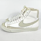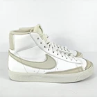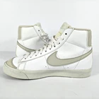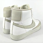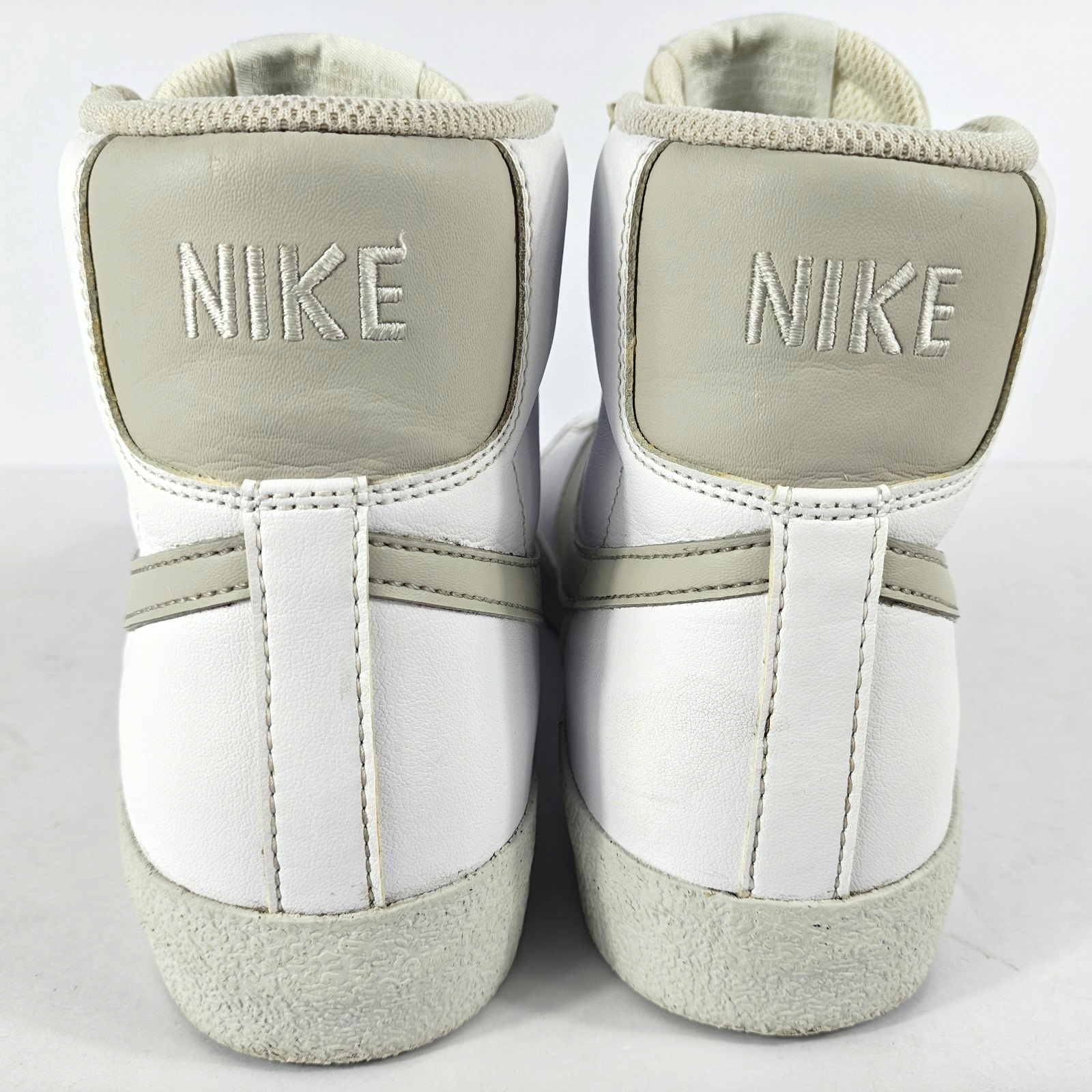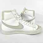 The Nike Blazer Mid 77' GS Youth Kids Size 6Y is a stylish and versatile sneaker designed for unisex kids. Featuring a round toe shape, lace-up closure, and flat heel, these sneakers offer comfort and breathability for various occasions including travel, activewear, parties, casual outings, and formal events. Made with a blended fabric upper and rubber outsole, these white and gray sneakers are accented with the Nike logo and have a mid-top shoe shaft style. Perfect for seasons like winter, summer, fall, and spring, these athletic shoes are a classic and sports-themed addition to any young sneakerhead's wardrobe.