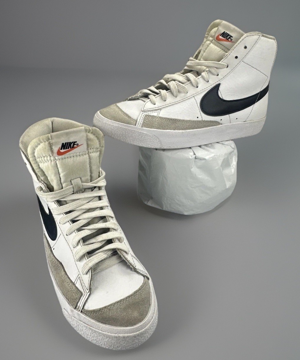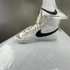 The Nike Blazer Mid 77 Size 7Y White Black Sneakers Shoes are a stylish and comfortable athletic shoe for teens. With a mid-top style and standard shoe width, these sneakers feature a classic 70s-inspired design with a white and black color scheme and Nike logo accents. Made of leather, these shoes are cushioned for comfort and breathable for active wear. Perfect for walking, school, or basketball, these Nike Blazers combine retro style with modern features, making them a popular choice for young sneaker enthusiasts in 2020. Years Cu C