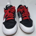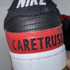 Nike By You Dunk Low Red Black White custom Created by Caretrust FN0569-900 Size 10.5 Lace Up. Elevate your sneaker game with these Nike By You Dunk Low Custom Caretrust sneakers. Designed with a colorblock pattern in black, white, and red, these shoes are perfect for adding a pop of color to any outfit. The leather upper material provides durability while the breathable features ensure your feet stay cool and comfortable throughout the day. These sneakers come in a size 10.5 with a standard shoe width and lace-up closure. The gum sole and low top style add a touch of sophistication to these athletic shoes, making them suitable for both skateboarding and basketball. The Nike Dunk model is part of the Nike Dunk product line and was manufactured in China in 2023. These customized sneakers are a must-have for any sneaker collector or enthusiast.