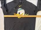Elevate your game day attire with the Nike Center Dwoosh Hoodie, emblazoned with the Oregon Ducks emblem. Designed for the dedicated basketball enthusiast, this men's medium sweatshirt combines comfort with a touch of school spirit. The iconic Nike brand ensures quality and style, making it a versatile addition to both your athletic wardrobe and casual collection. Crafted to provide a comfortable fit and enduring warmth, this hoodie features intricate embroidery that showcases your allegiance to the Oregon Ducks. Whether you're hitting the court or cheering from the sidelines, this sweatshirt is an emblem of team pride and a staple for any true fan's collection.