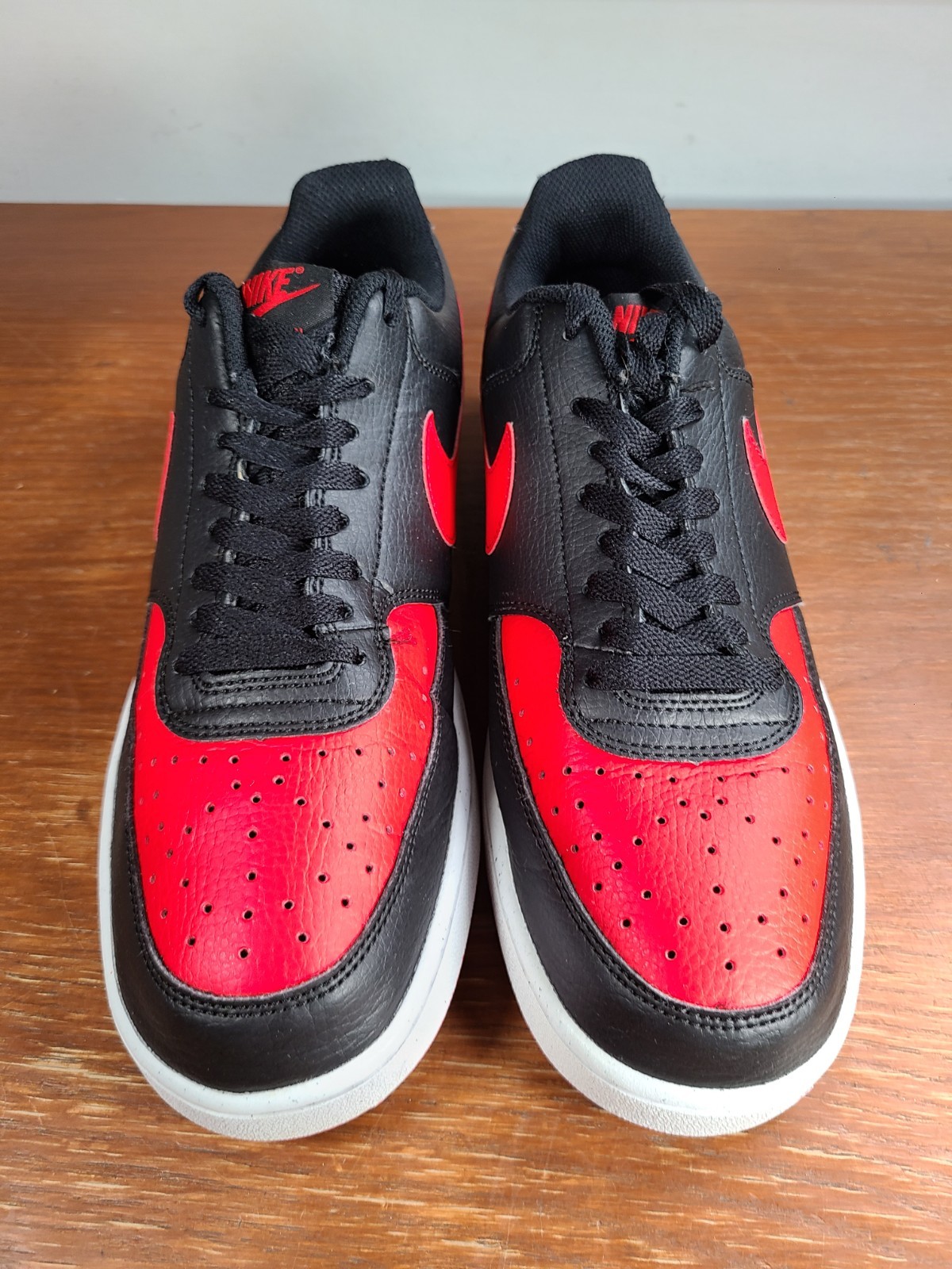 Nike Court Vision Low FJ0685-010 Black Red Athletic Shoes Mens Size 10.5. Nikes are in preowned condition. See pictures for details. Please ask any questions before purchase. If there is any issue, please contact us first before leaving feedback. Thank you.