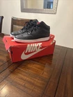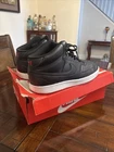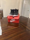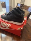 (BOX WILL BE REINFORCED AND PATCHED UP)The Nike Court Vision Mid Men's Size 11 Black/Red Shoes are a stylish and comfortable pair of sneakers perfect for activewear or casual occasions. Featuring a lace-up closure, rubber outsole, and leather upper, these shoes offer a classic mid-top design with a modern twist. The solid black color with red accents adds a pop of color to your outfit, while the foam insole provides extra comfort for all-day wear. Whether you're hitting the basketball court or out for a casual walk, these Nike Court Vision Mid shoes are a versatile option for the summer, fall, and spring seasons.