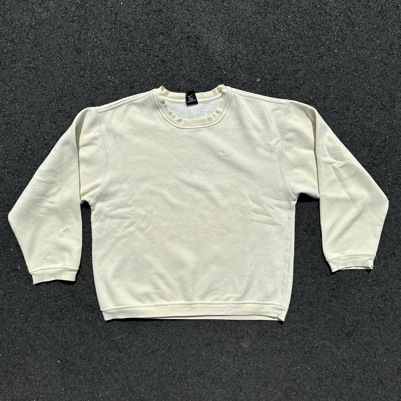 Nike Sweatshirt Men’s M, Boys XL Cream Yellow Pastel yellow. Cream color. Butter. Boxy cropped fit, super nice vintage soft material. One of the nicest sweatshirts I own but I got too fat for this bruh. Very rare find, possibly Nike golf. Length (collar to bottom): 21.5” Pit to Pit: 23” Sleeve length: 21.5” to shoulder, 28” to collar
