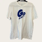 Excellent preowned condition Nike DriFit Athletic cut tee Go LA 10K No observable holes or stains Screen print still in excellent condition Cotton and polyester Approximate measurements in inches taken when laid flat Armpit to armpit 22 Length 28 Sleeve length 9 Approximate measurements in pics Dog friendly home Smoke free home Questions just ask Bundle and save Make offer