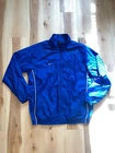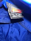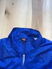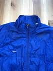 This Nike Dri Fit jacket is a vintage piece in size XLT for men. It features a full zip closure, a relaxed fit, and a lined interior for added warmth. The jacket is made of 100% polyester with a knit fabric type, making it easy to care for. It is designed in a solid blue color with a Nike logo, offering a stylish look for activities like walking, golf, or running.