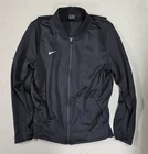 Nike dri-fit full zip training sweat shirt. Used. Has 2 small fabric pulls (see photo). Otherwise in great shape. Has side zippers as well. Size Large. Crafted for the active man, the Nike Dri-Fit Full Zip Training Jacket in men's size L is a versatile addition to any wardrobe. Its anthracite black color and solid pattern make it easy to style, while the polyester outer shell, lining, and insulation ensure durability and comfort. The jacket is designed with functionality in mind, featuring a full zip closure, stand-up collar, and long sleeves that cater to a range of activities from basketball to running and jogging. The Nike Dri-Fit jacket is tailored for a regular fit and is ideal for all seasons, boasting woven fabric that's quick to dry and equipped to handle varying weather conditions. It's machine washable for easy care, and the armpit to armpit measurement of 25.5 inches provides ample room for movement. Whether it's for casual wear or for intensive gym training, this track jacket is a reliable piece for both.
